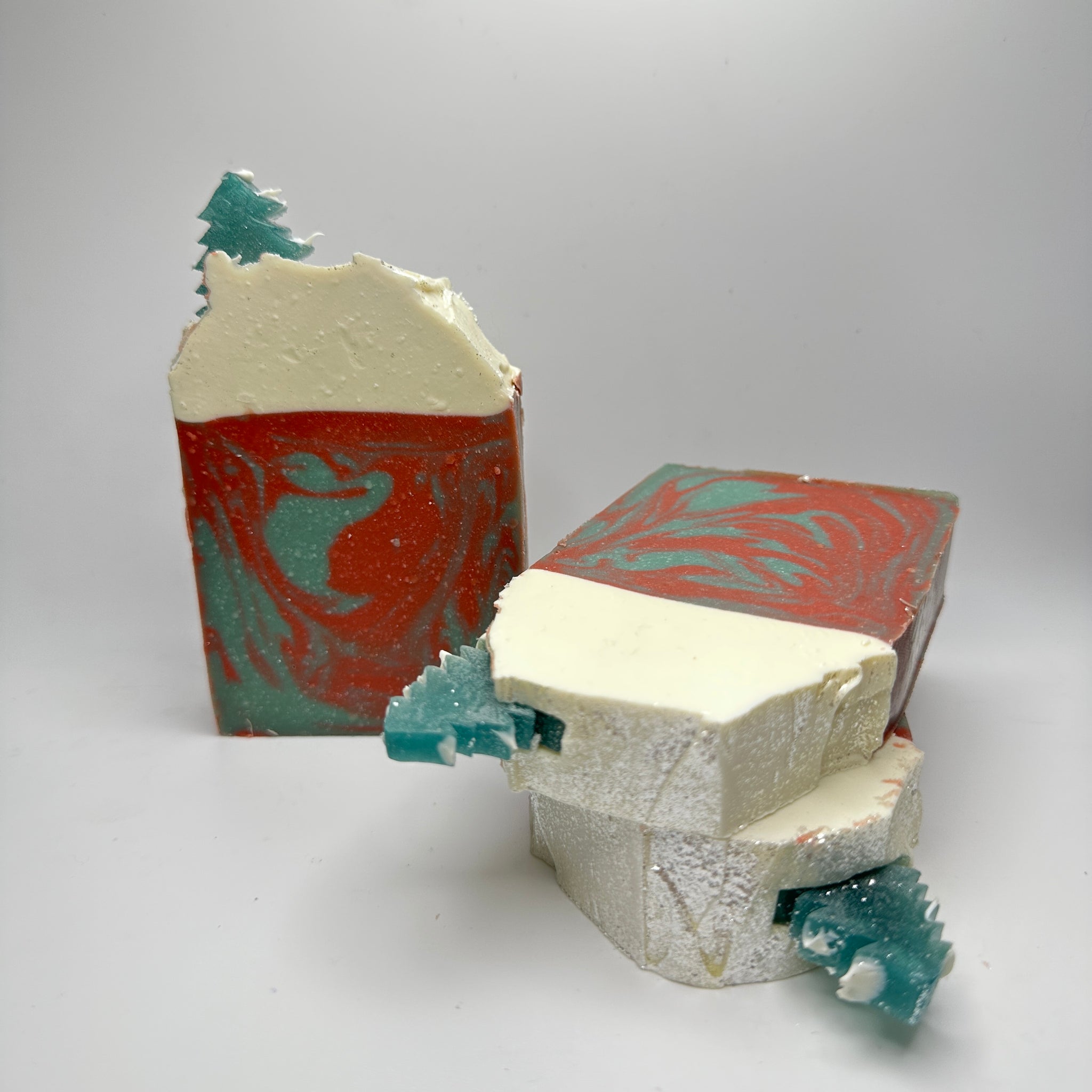 About: In my heart is a Christmas tree farm where the people would come to dance under sparkles and lights. This soap is inspired by Taylor Swift's song Christmas Tree Farm. It features a red and green swirl design topped with snowy frosting with christmas tree embeds.
